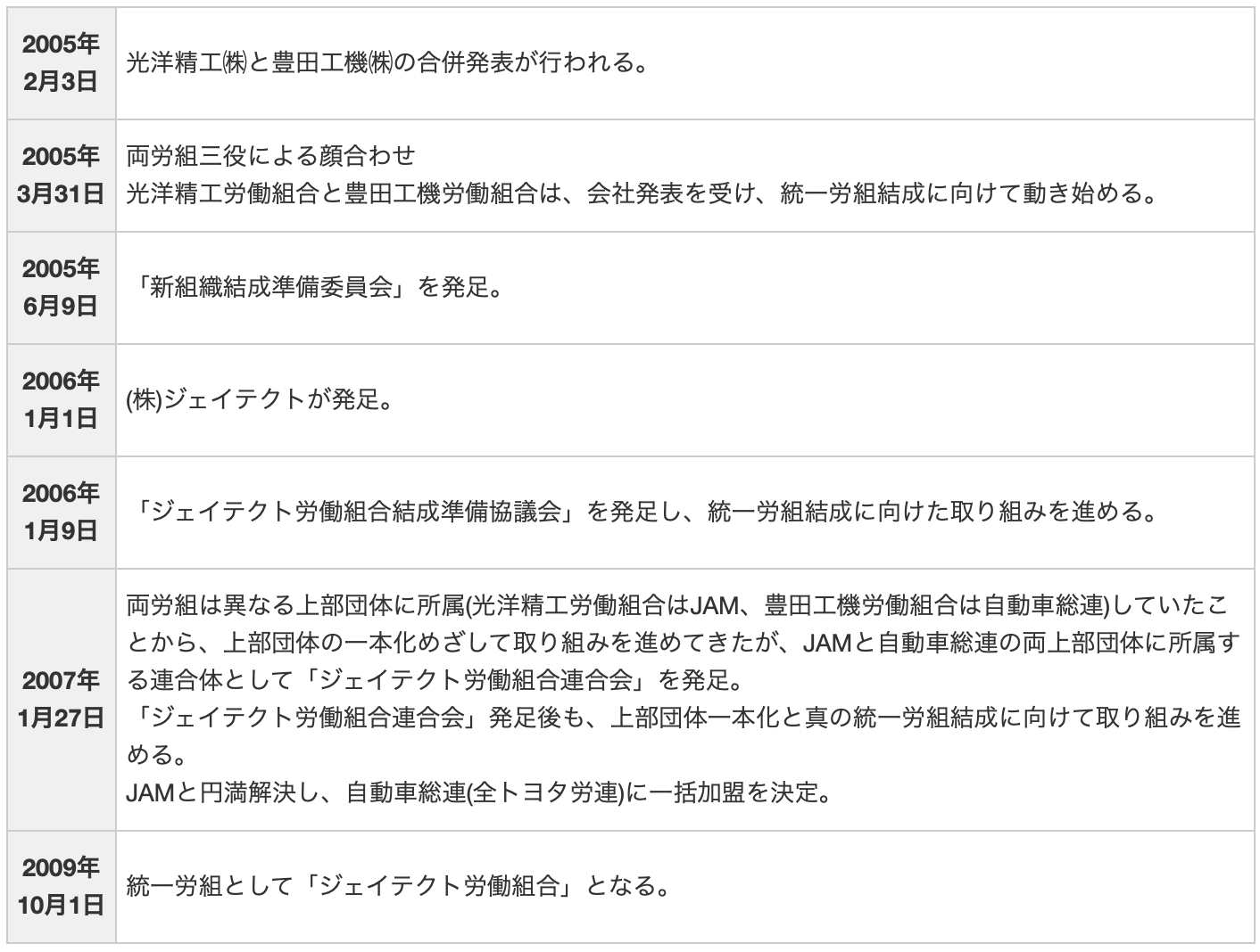ジェイテクト労働組合の組織