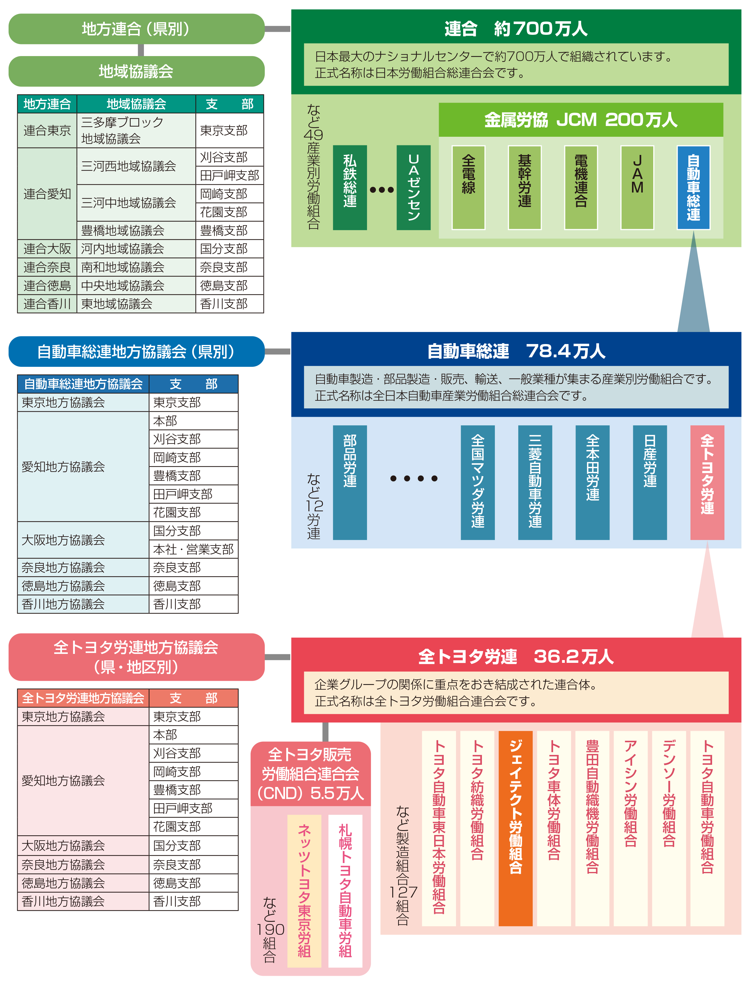 ジェイテクト労働組合と上部団体の組織図